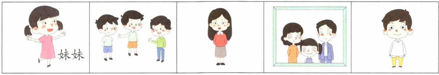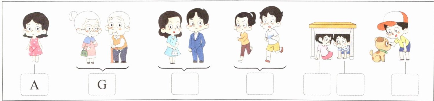 四、听录音,认识Lily的家人,把人物的编号写在相应的方框内。