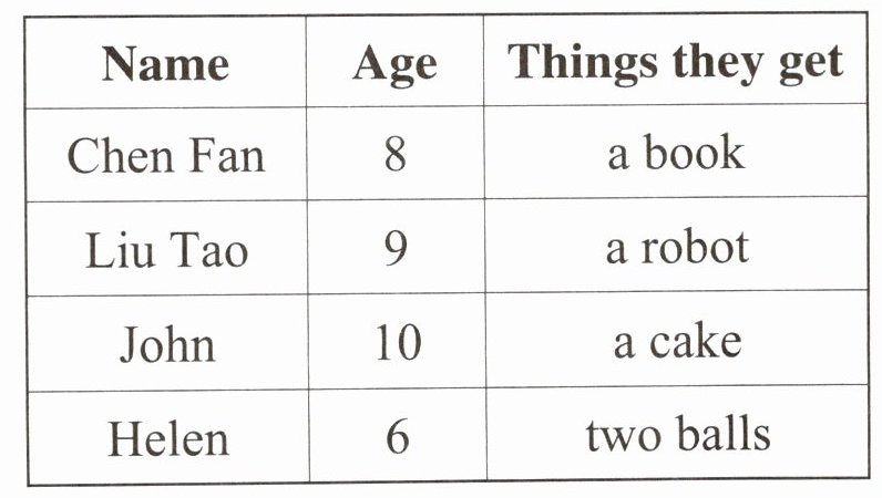 1. I'm Liu Tao. I'm mine. I get a robot from my birthday.