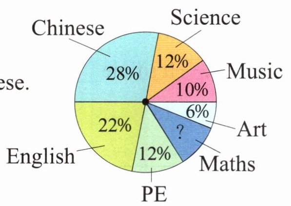 五、[新趋势·学科融合]新学期,李老师让苏海统计班级里面学生喜欢的学科,下面的饼状图是苏海的统计结果,请据此完成下面的任务。