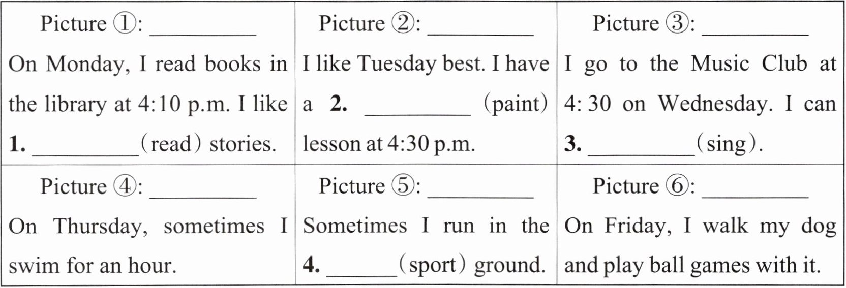 四、圆圆把自己放学后的活动制作成绘本日记。读材料,完成下面的任务。