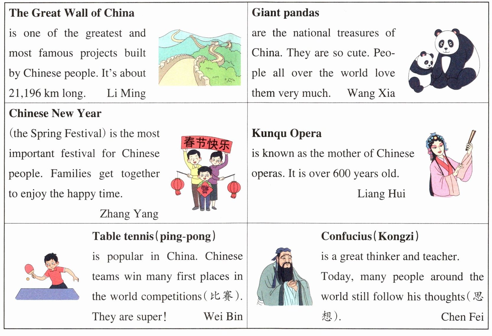 ) 5. From Wei Bin's work, we know that he is proud of(为……骄傲) Chinese ping-pong teams.任务二:根据同学们作品的内容选择正确的答案。