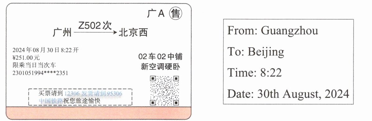 ) 4. Judy and her parents had to pay 251 yuan for their tickets in all(总共).(