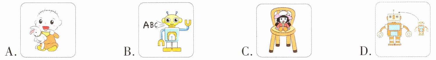 2. “It's tall.” 意思是它很高,D图中是一个高大的机器人,符合“tall”的描述,所以2对应D。