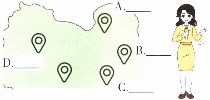 二 听一则天气预报,给各个地区标上对应天气的序号。