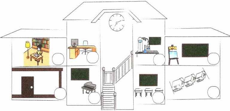 Lucy: No. It's a computer room. The music room is next to the toilet. This way, please.