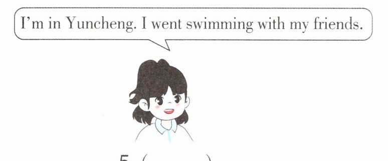 Today my family went to the park. We had a picnic there. Look at the photo. My father 1. ______ on the grass. He could fly the kite high. My mother 2. ______ with her phone. She likes English songs. My grandpa 3. ______. My grandma 4. ______ with my sister Lily. Lily laughed and shouted all the time. I 5. ______. I was tired but happy.