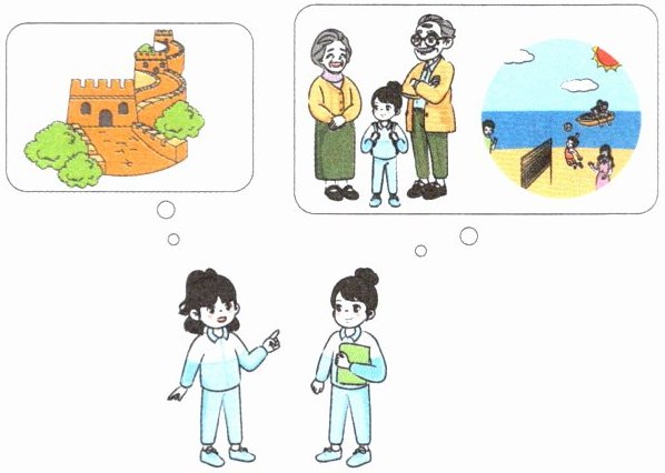 Alice: It was wonderful. I went to 5. ______ with my parents. We went to the Great 6. ______, Tian'anmen Square and some famous parks.