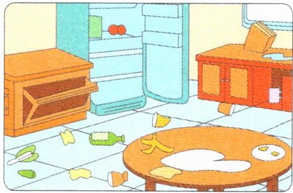 1. clean/tidy 2. dirty/messy 3. messy/dirty 4. make/keep 5. sweep 6. clean 7. put/throw