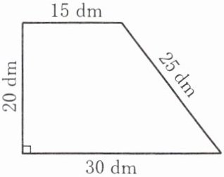 已知梯形的上底$a = 15dm$,下底$b = 30dm$,高$h = 20dm$,根据梯形面积公式可得: