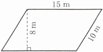 已知平行四边形的底$a = 15m$,高$h = 8m$,根据平行四边形面积公式可得: