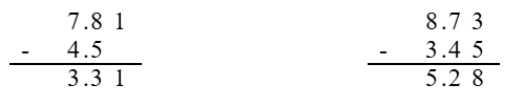 (2)求小丽比小勤多捐款多少元,就是用小丽的捐款数减去小勤的捐款数,按照小数减法的计算方法得出结果。