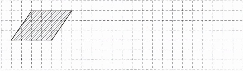 2. 下面的方格图中,每个小方格表示1平方厘米。请画出三个与阴影平行四边形面积相等且形状不同的平行四边形。