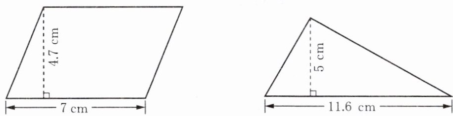 左边图形为平行四边形,其面积计算公式为$底×高$,已知底为$7cm$,高为$4.7cm$,代入公式可得面积为: