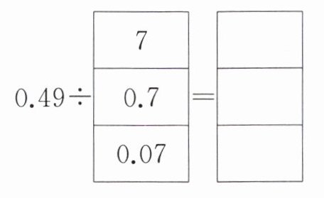 将除数$0.7$的小数点去掉变为$7$,被除数$0.49$的小数点向右移动一位变为$4.9$,则$0.49÷0.7 = 4.9÷7 = 0.7$。