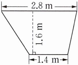 由图可知,该梯形的上底$a = 1.4$米,下底$b = 2.8$米,高$h = 1.6$米,将其代入梯形面积公式进行计算,最后按要求保留一位小数。