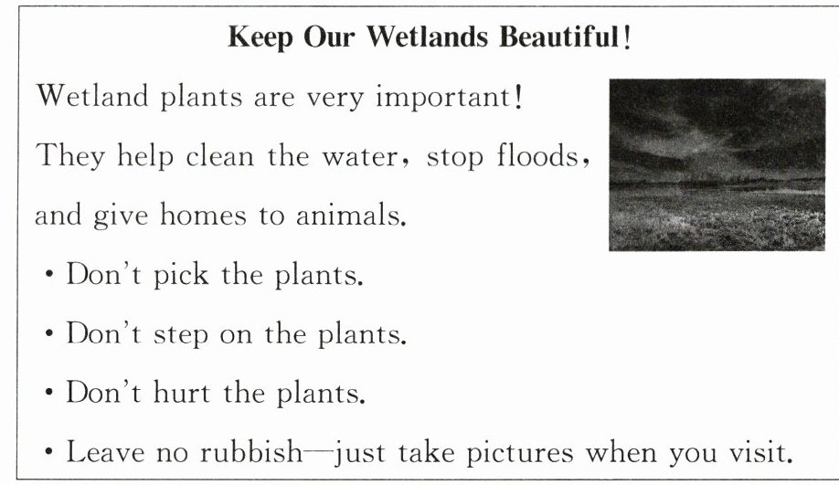 )10.The purpose of the sign below is ______.A.to ask people to protect wetland plants