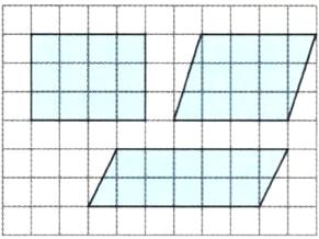 2. 在下面的方格纸上画出两个形状不同的平行四边形,使它们的面积都与图中长方形的面积相等。