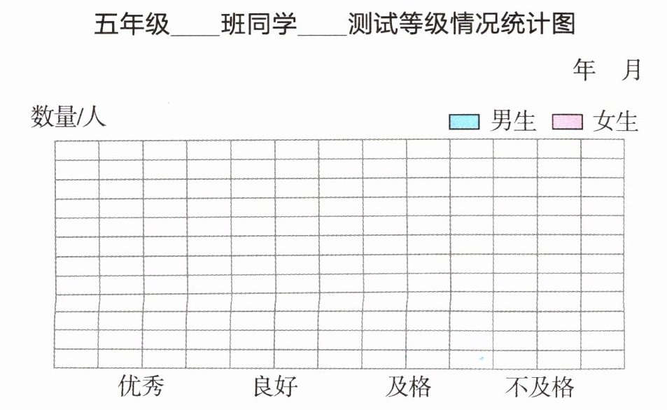 (统计图绘制完成,标题填写“一”“立定跳远”,各等级对应条形高度正确)