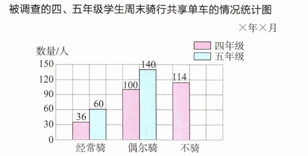 被调查的四、五年级学生周末骑行共享单车的情况统计图