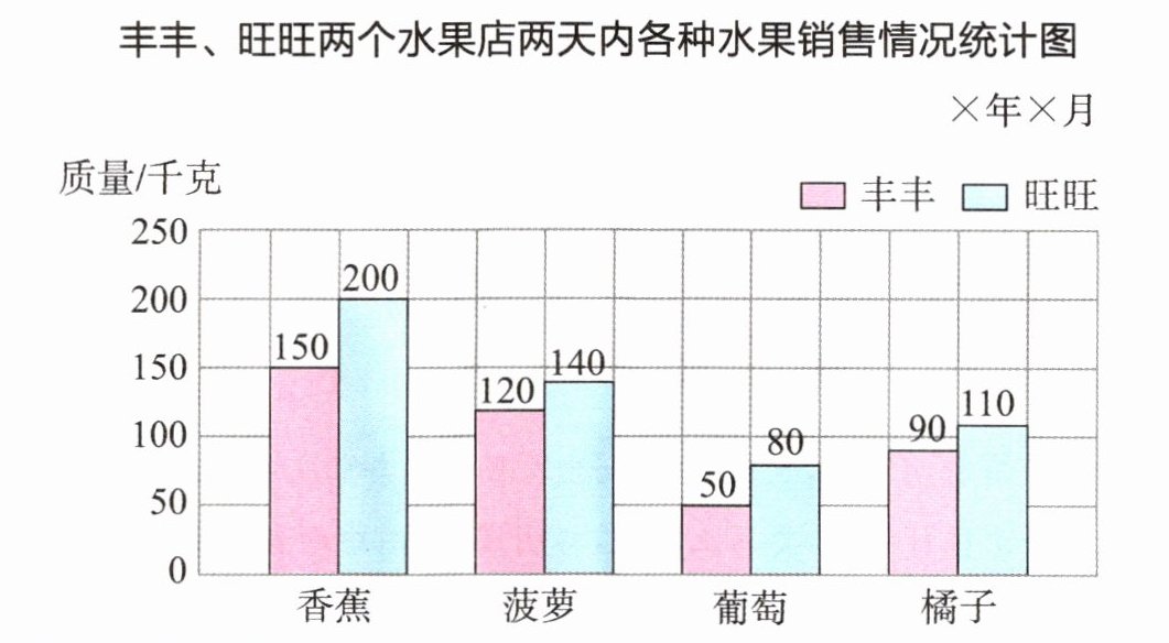 下面是丰丰、旺旺两个水果店两天内各种水果销售情况统计图,请根据统计图回答问题。