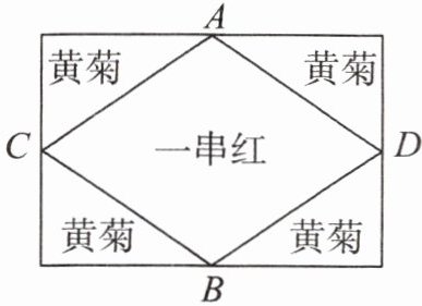 例1公园里有一块面积为$1040m^{2}$的长方形空地,园林叔叔想按下图形式分别种上一串红和黄菊。请你算出一串红、黄菊的面积分别是多少。(A,B,C,D分别是相应边的中点)