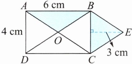 答:图中涂色部分的面积是12cm²。提示:AB=6cm,三角形BEC的边BC上的高是3cm,是AB长度的一半,点O到BC的距离也是3cm,所以三角形BEC和三角形BOC同底等高,即面积相等,则图中涂色部分的面积与三角形ABC的面积相等。