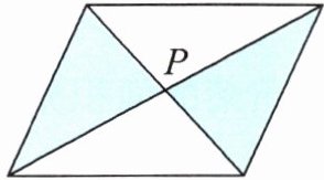 例2如下图,平行四边形的面积是$48cm^{2}$,点P是平行四边形对角线的交点,求涂色部分的面积。