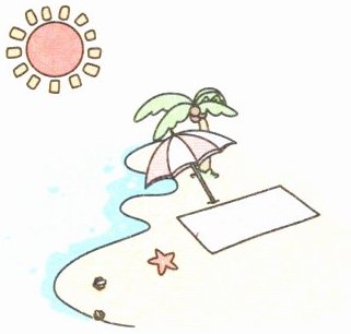 (2)蔚蓝的大海旁有一片宽阔的沙滩 宽阔的沙滩上长着一棵高大的椰子树
