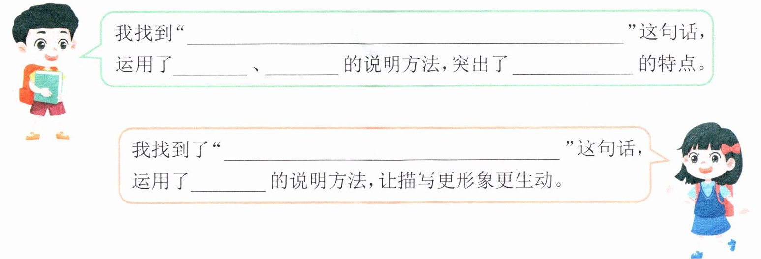 我找到了“______”这句话,运用了______的说明方法,让描写更形象更生动。