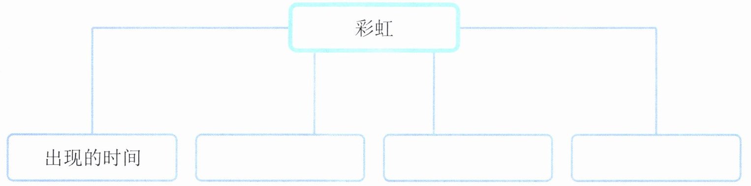 4. 思维导图小古文中的母亲从哪些方面详细地介绍了彩虹?细读全文,完成下面的思维导图。(3分)