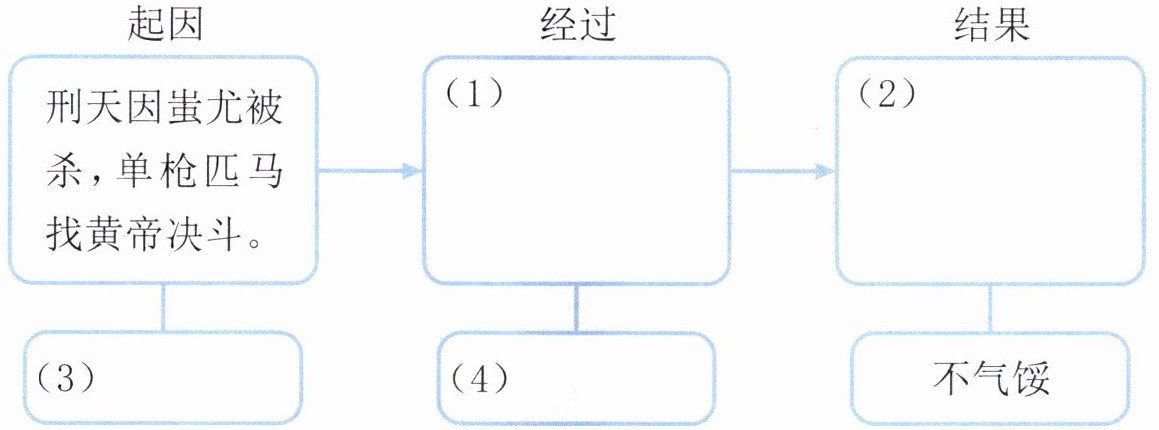 2. 阅读要素 根据文章内容,梳理故事的起因、经过、结果,以及刑天相应的心情。(4分)