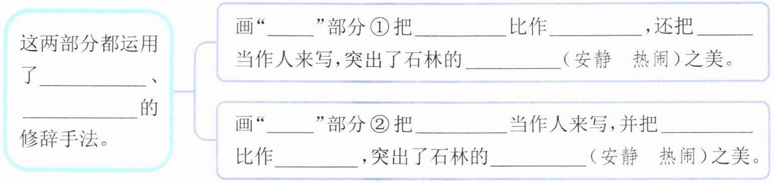 画“____”部分②把____当作人来写,并把____比作____,突出了石林的____(安静 热闹)之美。