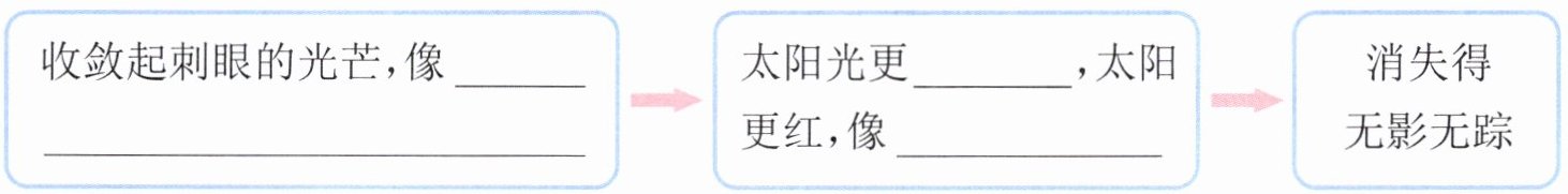 收敛起刺眼的光芒,像______→太阳光更______,太阳更红,像______→消失得无影无踪