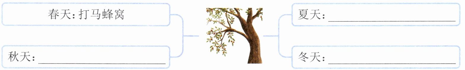 夏天:捉知了,挖“知了猴” 秋天:打枣,做枣糕吃 冬天:上树看喜鹊(每空 1 分)