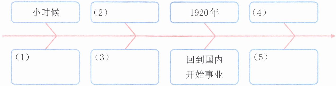 1. 思维导图 文章介绍了茅以昇的几件事?请将下面的思维导图补充完整。(5 分)