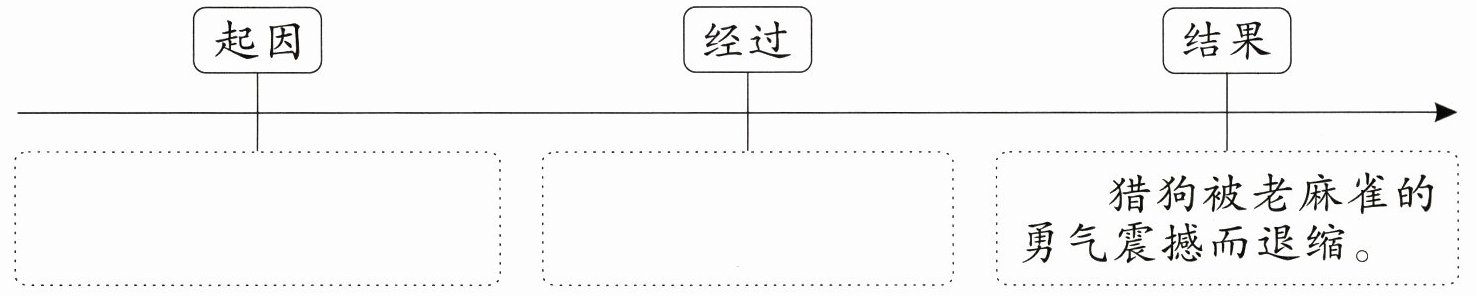 1.示例:“我”的猎狗发现了一只掉在地上的小麻雀,想要攻击它。 老麻雀奋不顾身地拯救自己的幼儿。 2.爬山前 爬山中 爬上峰顶后 高 陡 自己的不懈努力 能从他人身上汲取力量 3.时间 地点 起因 经过 看到的 听到的