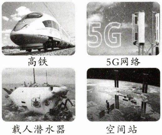 4. 图片展示了我国的科技成就,请体会下面这组例句不同的表达效果,用恰当的句子强调我国现在科技发展迅速,拥有很多成就。(4分)