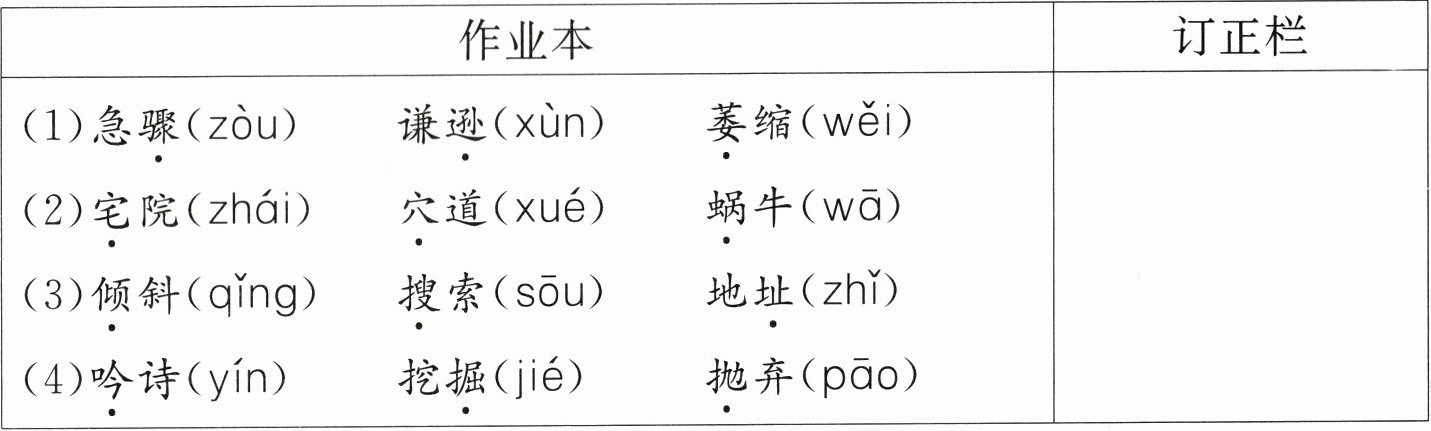 | (1)急骤(zòu) 谦逊(xùn) 萎缩(wěi) | |