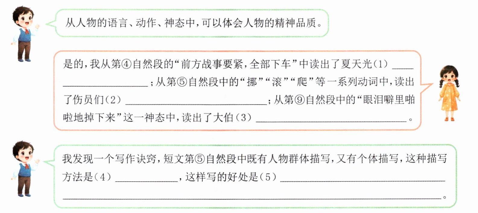是的,我从第④自然段的“前方战事要紧,全部下车”中读出了夏天光(1)____
