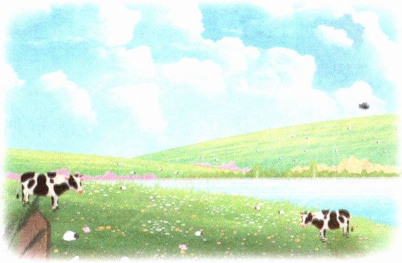 ② 车子在缓缓地滑行,除了车轮与草的摩擦声,便什么也听不到了。我们像闯入了一个外星世界,这里只有颜色没有声音。草一丝不动,因此你也无法联想到风的运动。放眼尽量地望,细细地寻,不见一个人。牛羊在缓缓地移动,它们或不时抬起头看我们几眼,或甩一下尾。仿佛连空气也没有了,周围的世界竟是这样空明。