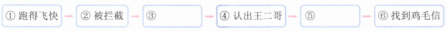 ①跑得飞快→②被拦截→③______→④认出王二哥→⑤______→⑥找到鸡毛信
