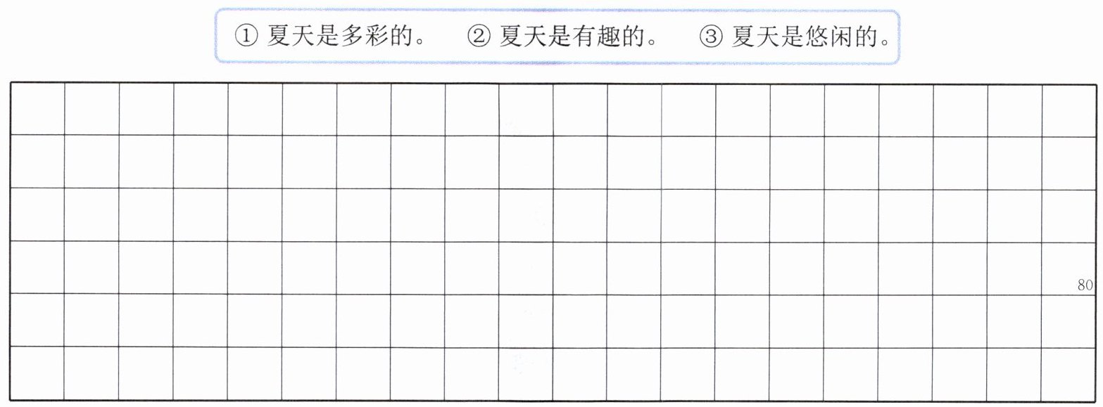 ① 夏天是多彩的。 ② 夏天是有趣的。 ③ 夏天是悠闲的。