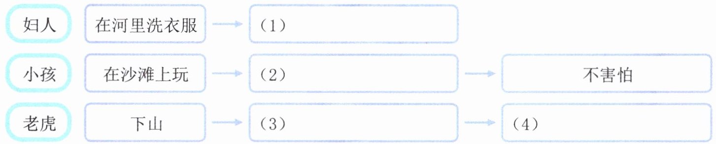 4. 文中的妇人和她的两个孩子为什么对老虎的突然到来有不同的反应?用自己的话说一说。(2 分)