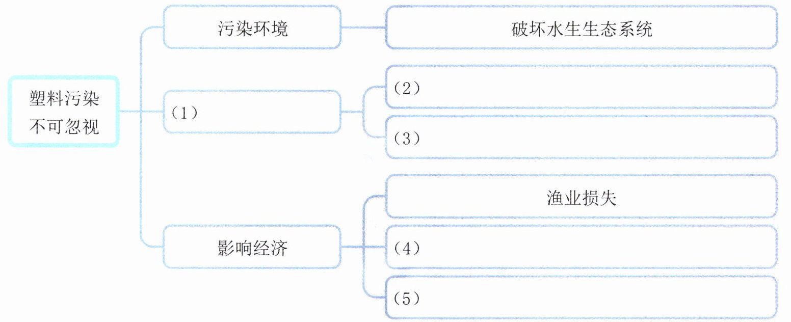 1. 思维导图 阅读材料二,完成下面的思维导图,加深对塑料污染的了解。(5 分)