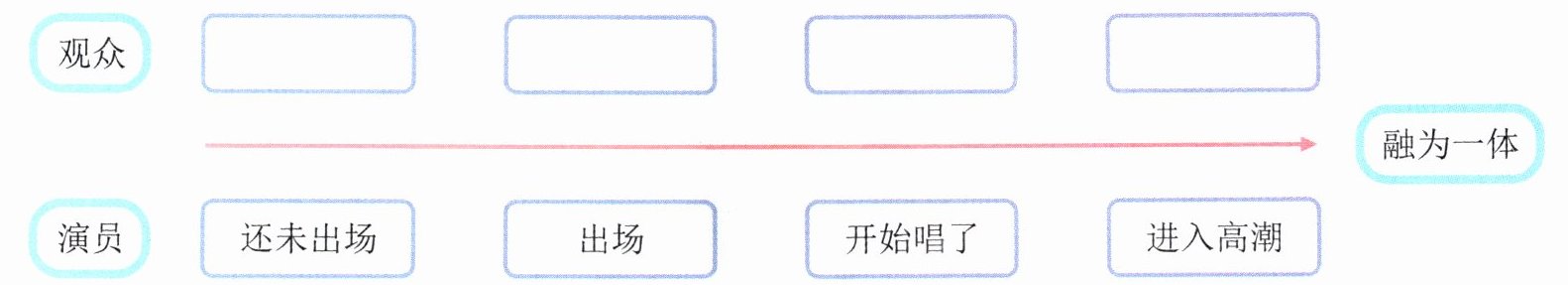 1. 思维导图 根据表演的过程,分别摘录描写观众反应的词语,填在思维导图内。(4 分)