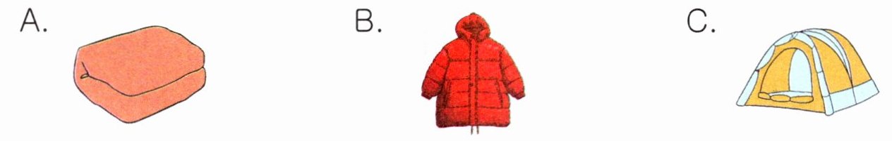 1. A 2. A 解析:根据“How can we fish on the ice? It's not easy.”可知,在冰上钓鱼不容易。 3. C 4. C 解析:根据“Then,we should pitch a tent. It's good for us to stay on the ice for a long time.”可知,帐篷有利于我们长时间在冰上待着。