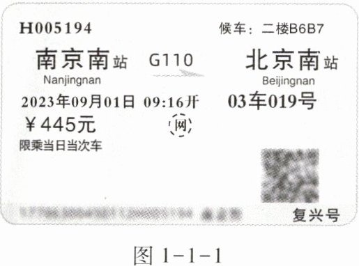 答 从车票上可以得到的信息有:发车时间是2023年9月1日09:16;车票价格是445元;出发地是南京南站,目的地是北京南站等。