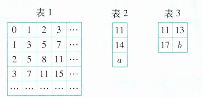 观察表1,寻找规律。表2、表3分别是从表1中选取的一部分,则b-a= 。