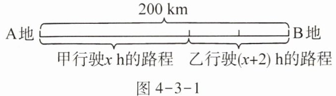 相等关系:甲行驶x h的路程+乙行驶(x+2)h的路程= A,B两地之间的距离。