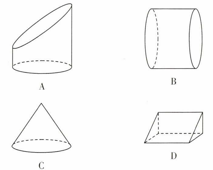 选项A:上底面是一个圆,下底面是一个椭圆,不符合圆柱上、下底面是两个完全相同的圆这一特征,所以A选项错误。
